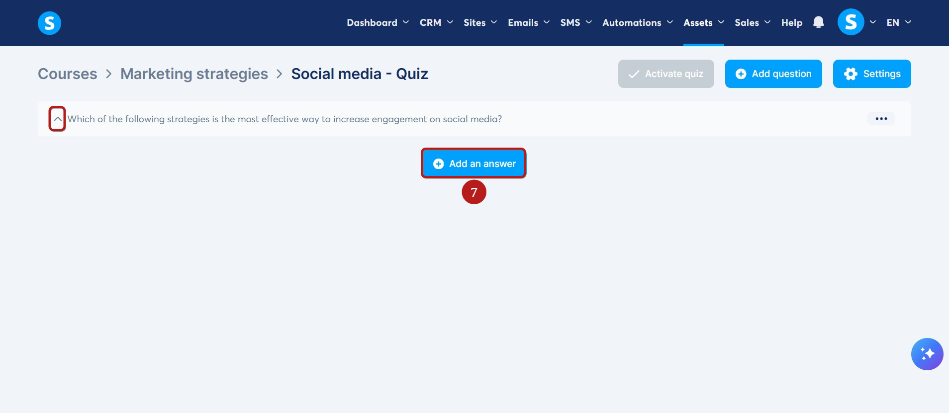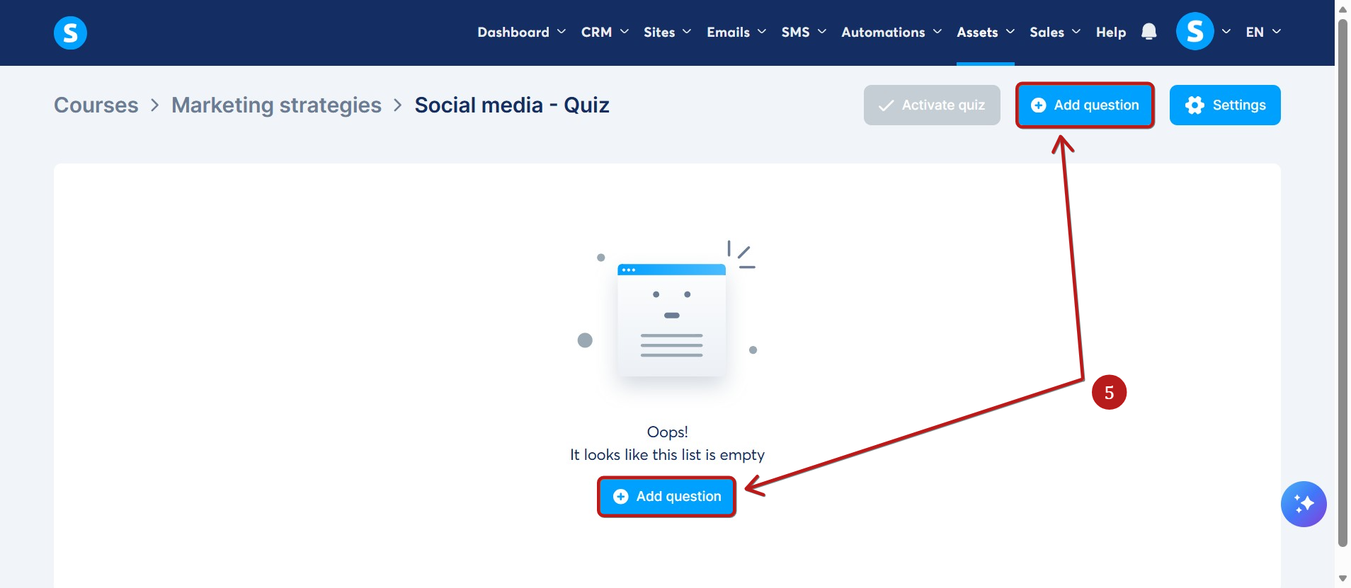 Sınav soruları oluşturmaya başlamak için Soru ekle ye (5) tıklayın.