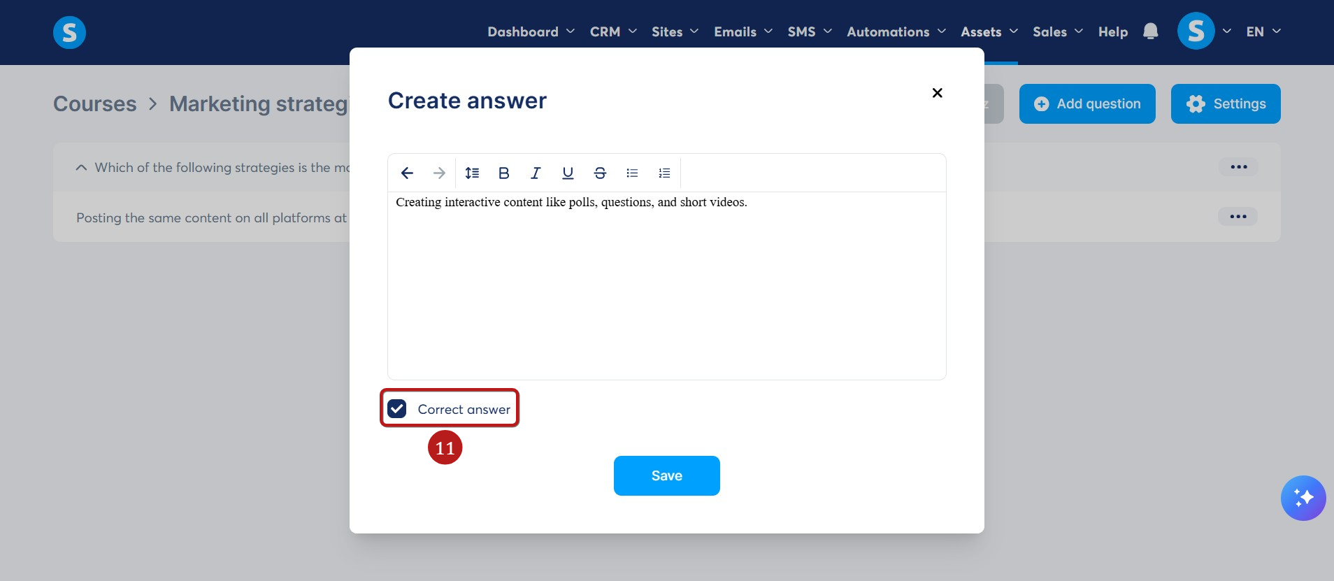 Aksi takdirde, cevap doğruysa Doğru cevap onay kutusunu tıklayın (11).