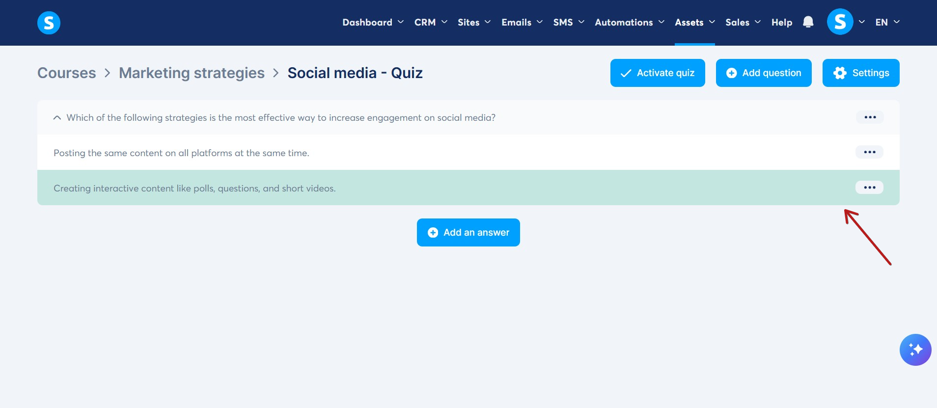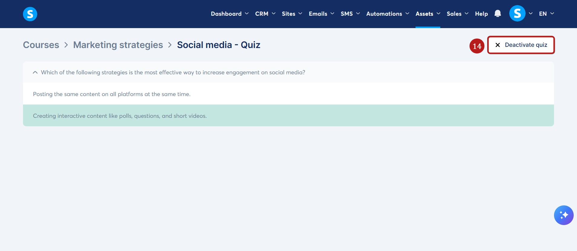 Not: Soruları veya cevapları düzenlemek veya yeni sorular eklemek/silmek için testi devre dışı bırakın, gerekli değişiklikleri yapın ve ardından yeniden etkinleştirin.