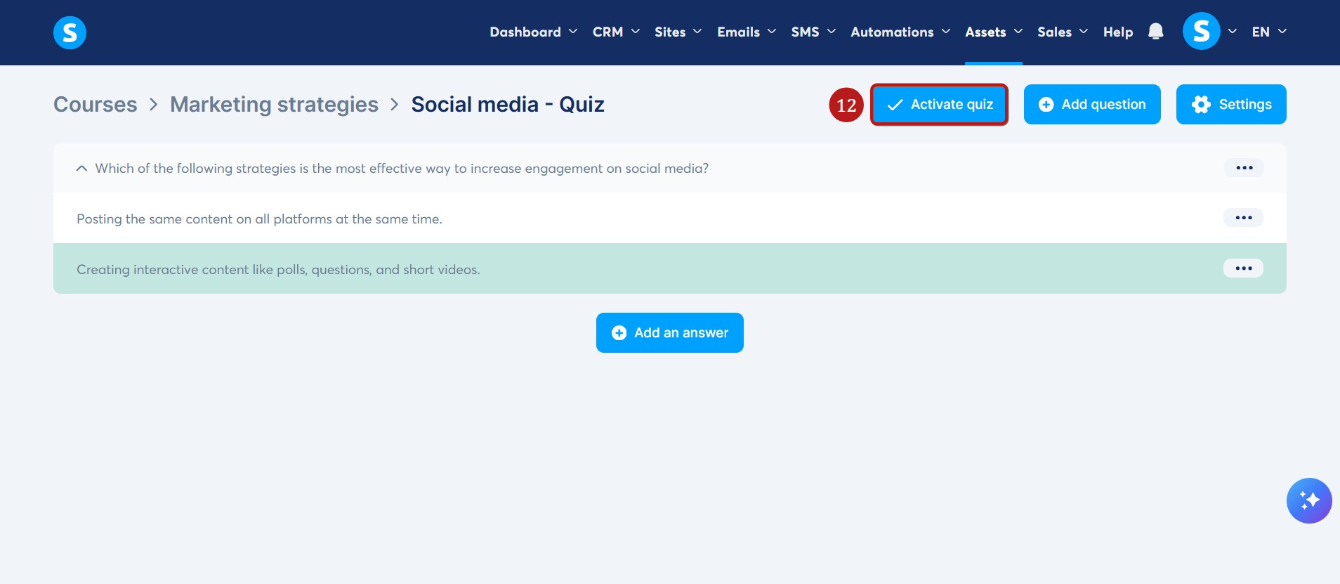 Testi öğrencilerinize görünür hale getirmek için Testi Etkinleştir butonuna (12) tıklayın.