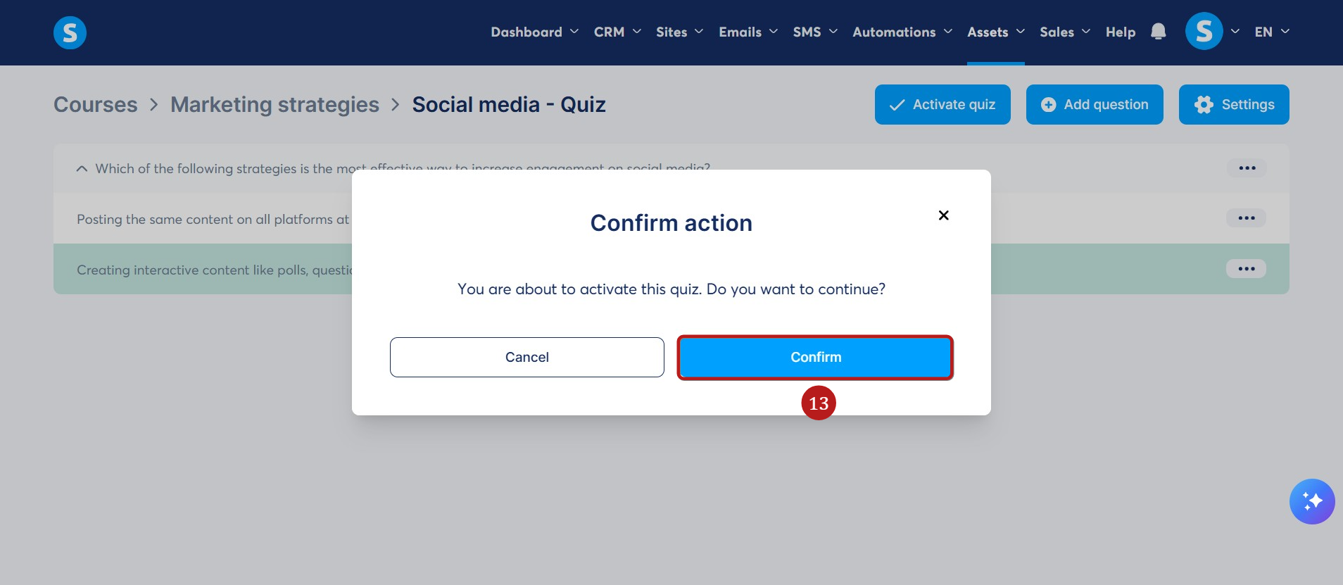 Görünen açılır pencerede, etkinleştirmek için Onayla ya tıklayın (13).