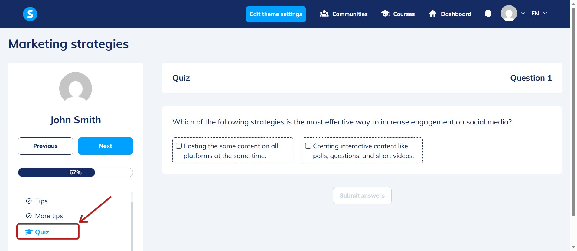 Not: Ancak teste ancak modülün tüm dersleri tamamlandı olarak işaretlendikten sonra erişilebileceğini unutmayın.
