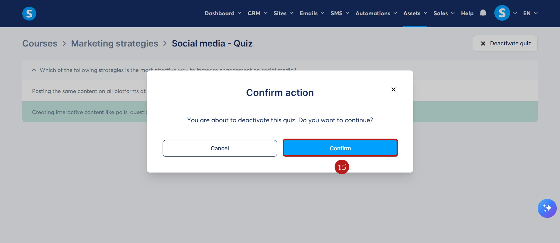 Görüntülenen açılır pencerede, devre dışı bırakmak için Onayla ya tıklayın (15).