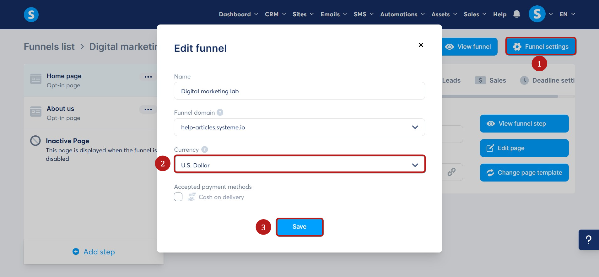Systeme.io'da mevcut bir satış hunisinin para birimini değiştirmek isteyebileceğiniz durumlar vardır.