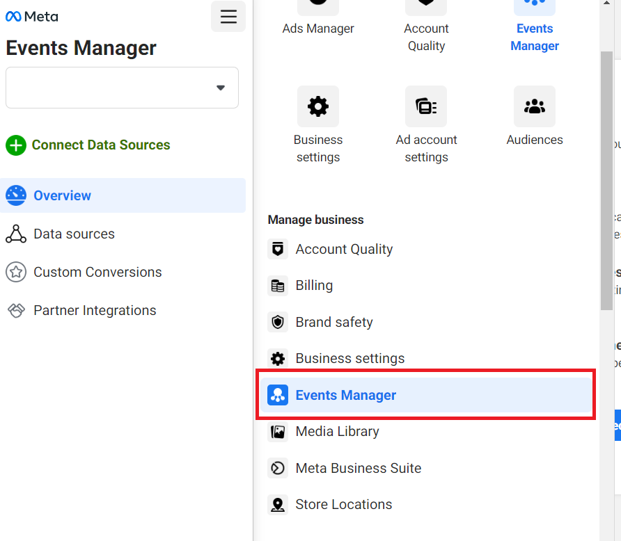 - Meta Business Manager profilinizde Etkinlik Yöneticisi'ne gidin