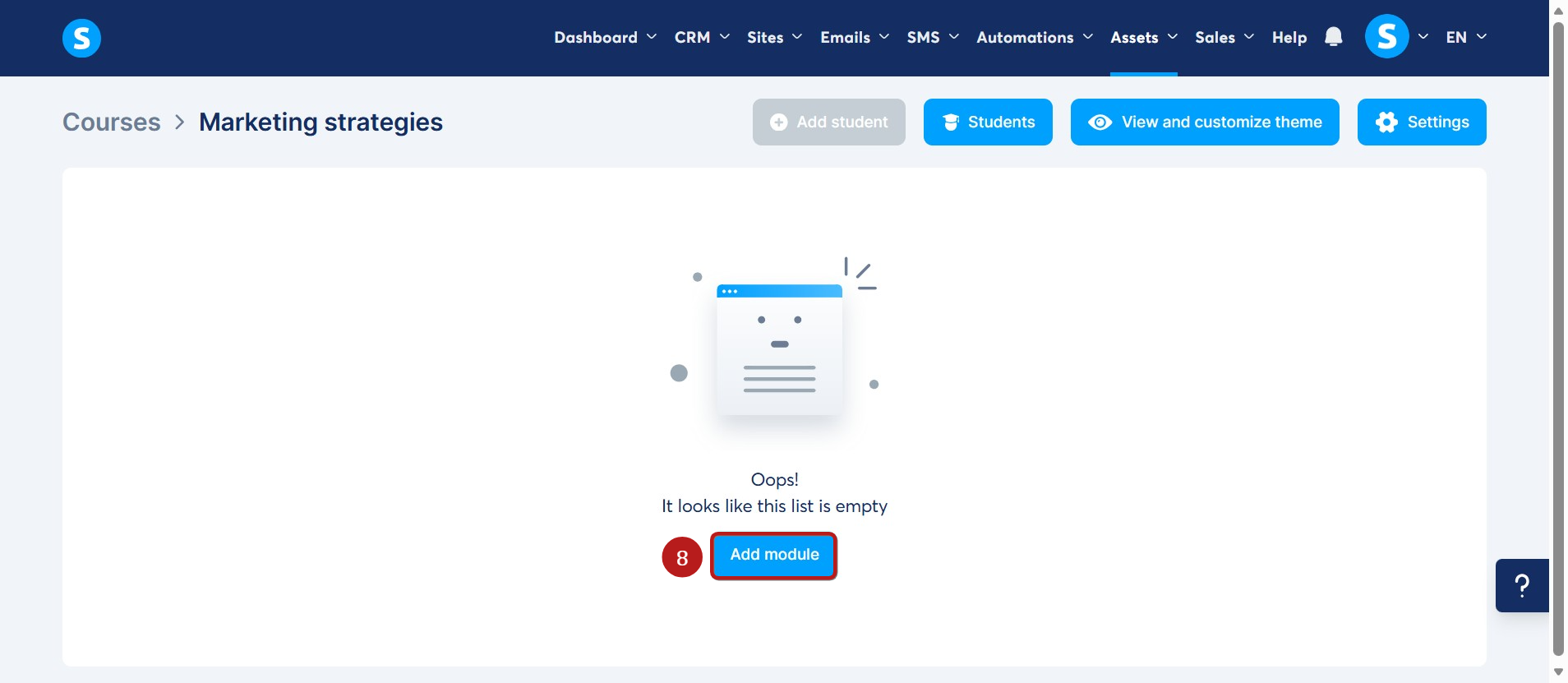 Bunu yapmak için "Add module" düğmesine tıklayın (görselde 8 numaralı)