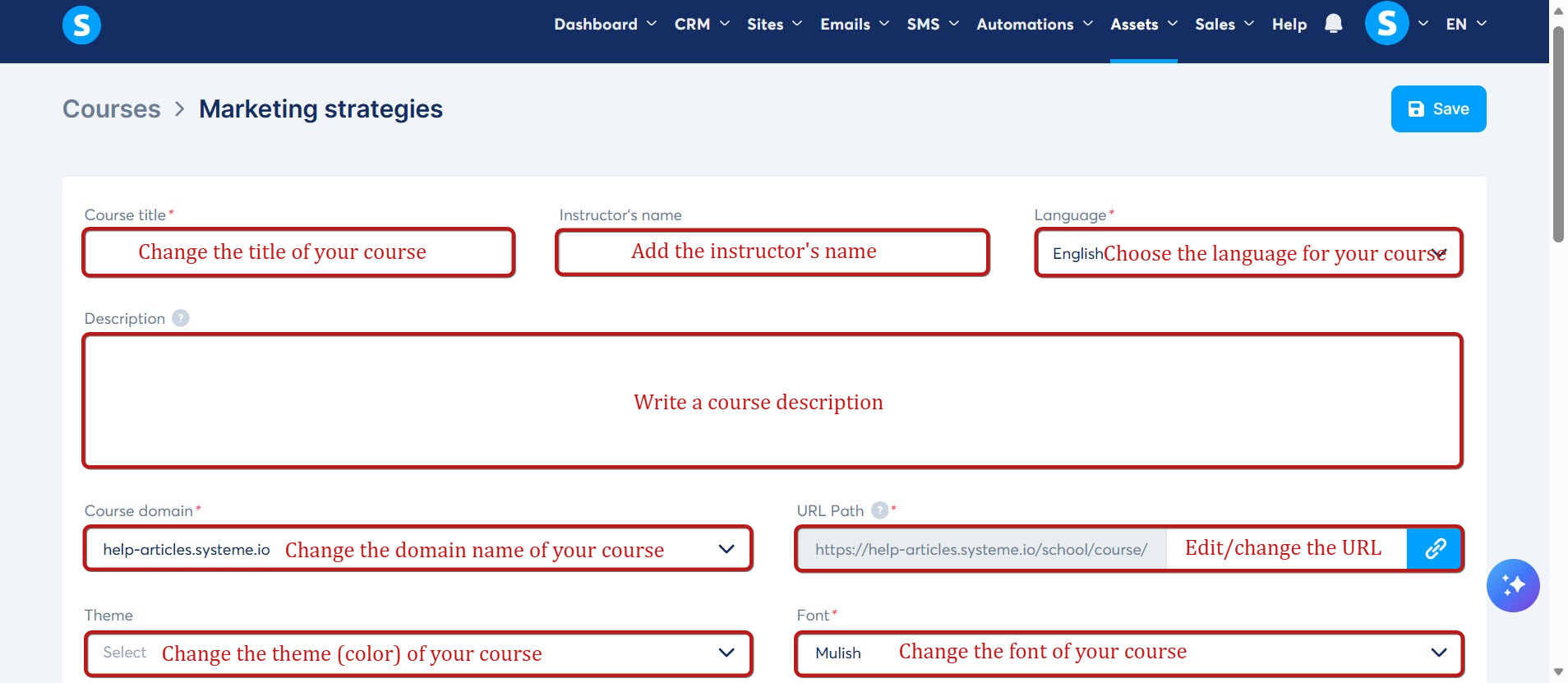 Değişikliklerinizi kaydetmek için sayfanın sağ üst köşesindeki Kaydet düğmesine tıklayın.