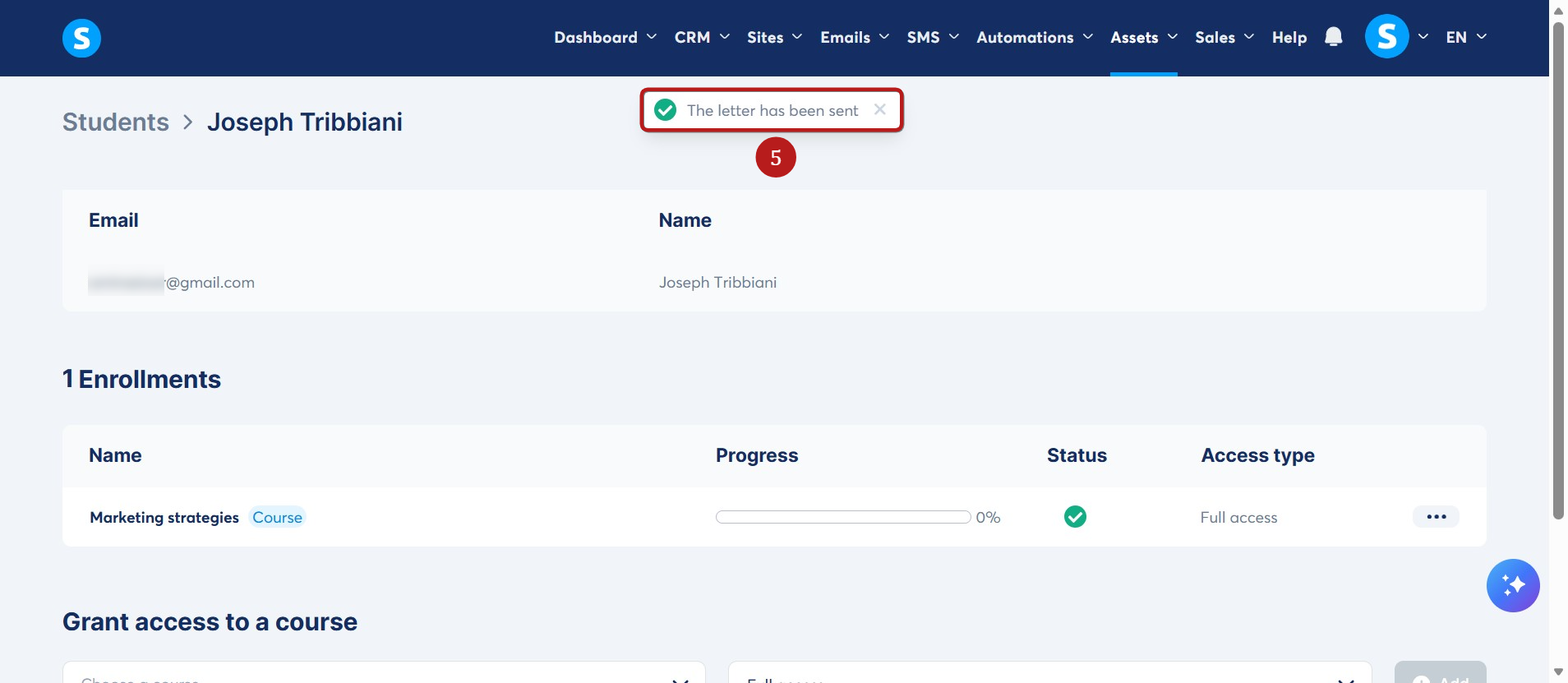 Bu sayfada, öğrencinize manuel olarak nasıl e-posta göndereceğinizi ve kursunuza erişim izni vereceğinizi göreceksiniz.