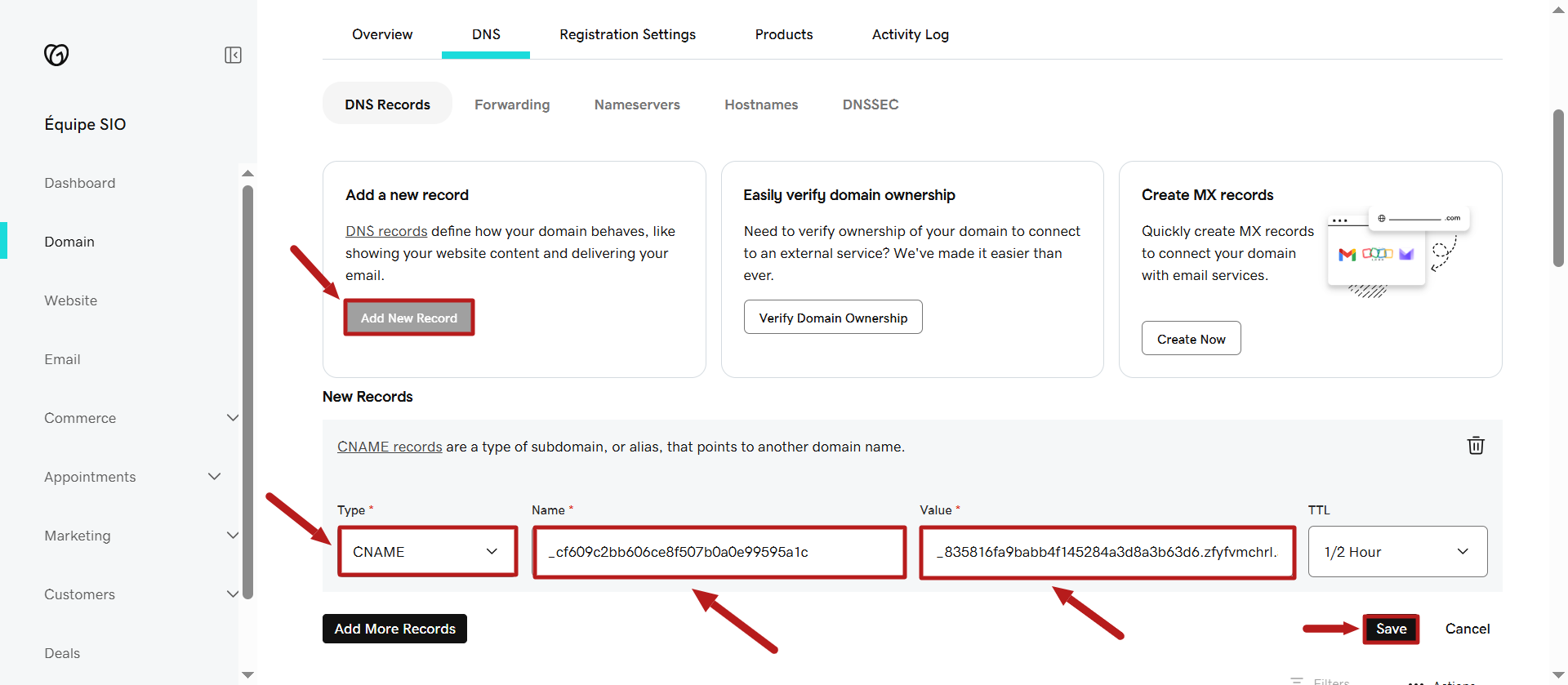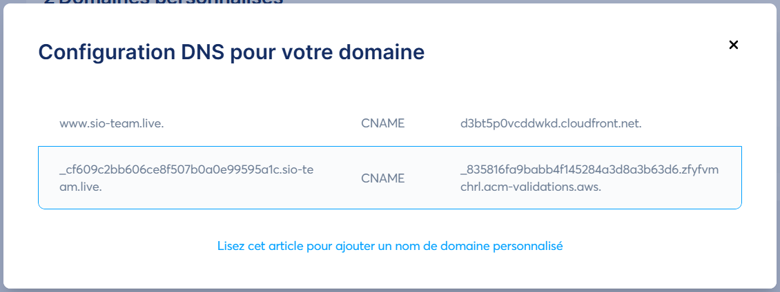 Not: Systeme.io'ya eklenen her alan adı, barındırma hizmetine entegre edilmek üzere kendi CNAME kayıtlarına sahiptir.