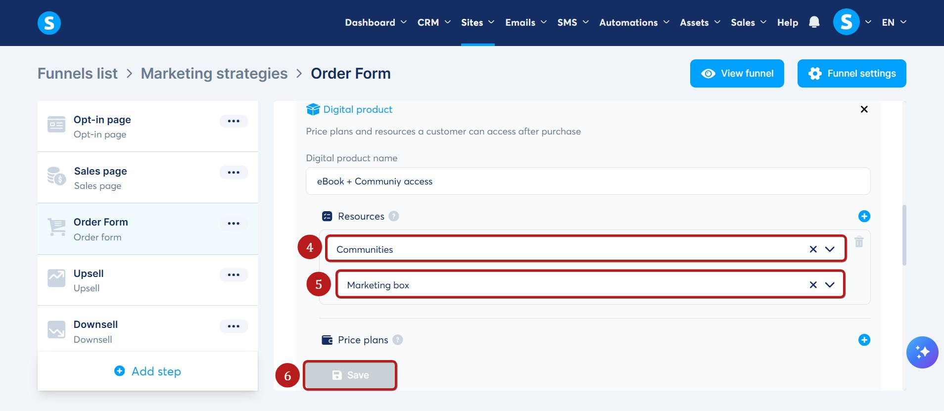 Ardından, Bir topluluk seçin seçeneğine tıklayın ve müşterinin ödeme sayfanız üzerinden satın aldıktan sonra erişebileceği topluluğu seçin (5).
