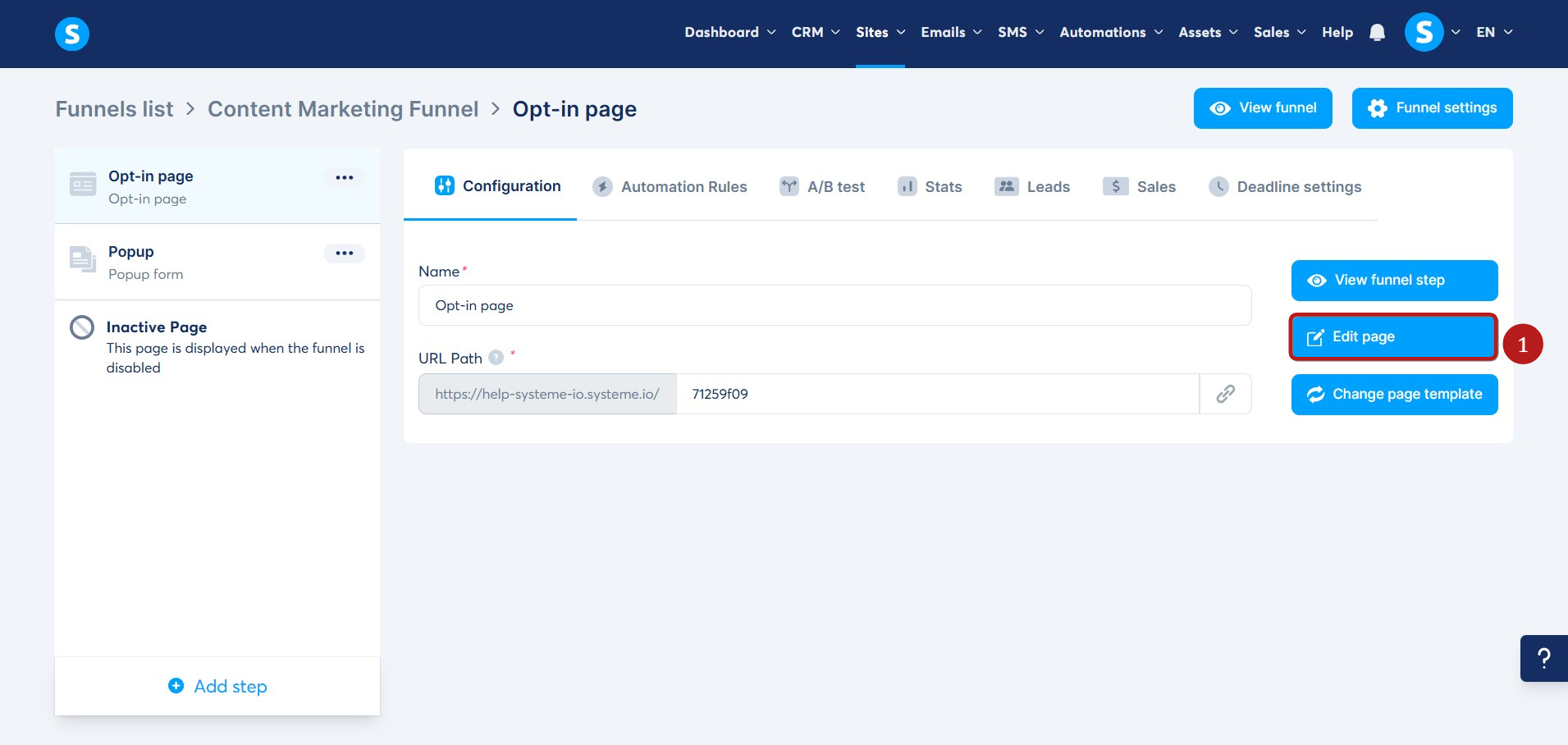 “Sayfayı düzenle” düğmesine (1) tıklayarak sayfanın düzenleyicisine erişin.