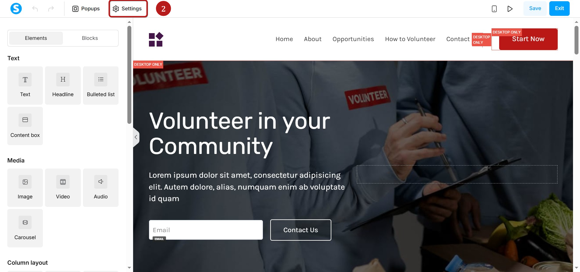 Ardından sayfa ayarlarına erişmek için “Ayarlar” düğmesine tıklayın (2).