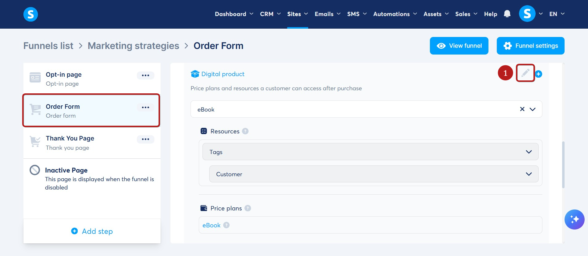 Bir sipariş formunda belirlenmiş bir fiyatı silmek isterseniz, bu fiyatın göründüğü sipariş formuna gidin ve ardından Dijital ürünü düzenle seçeneğine tıklayın. (1)
