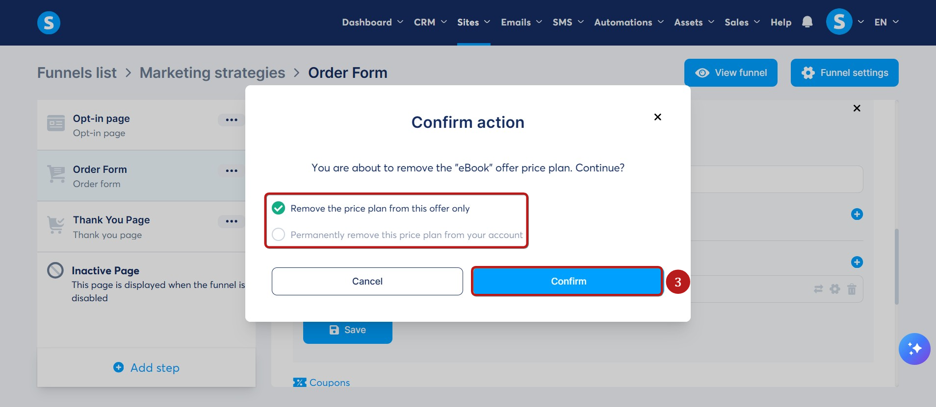 - Yalnızca bu teklif için fiyat planını kaldır: bu yalnızca aynı sayfadaki fiyat planını silecektir