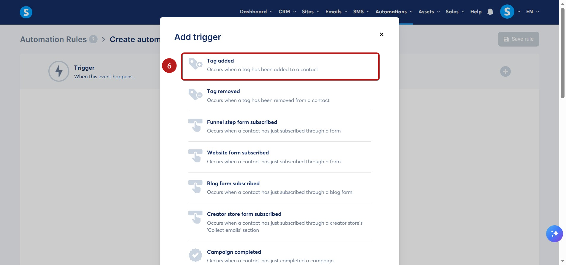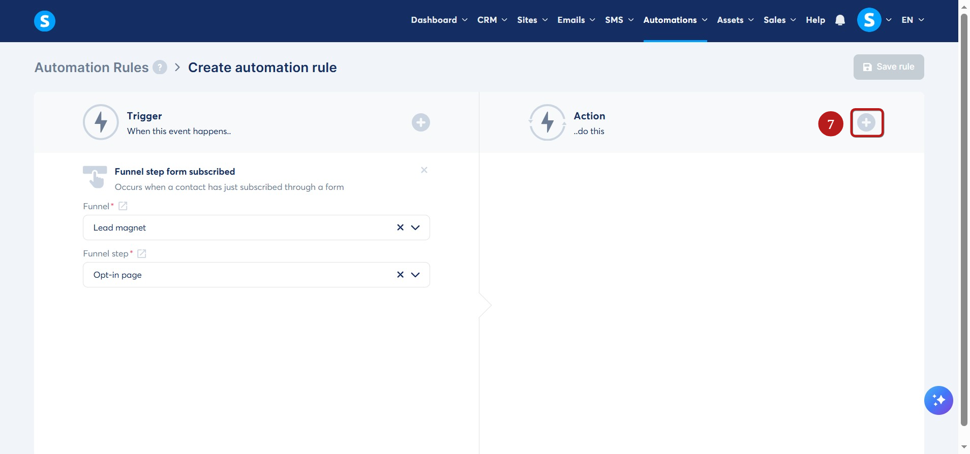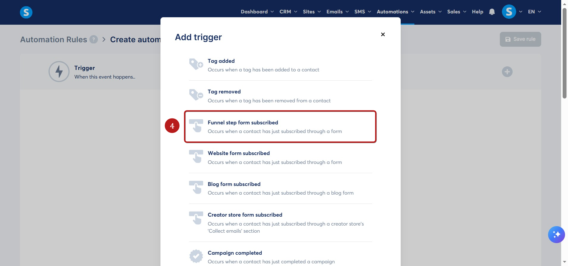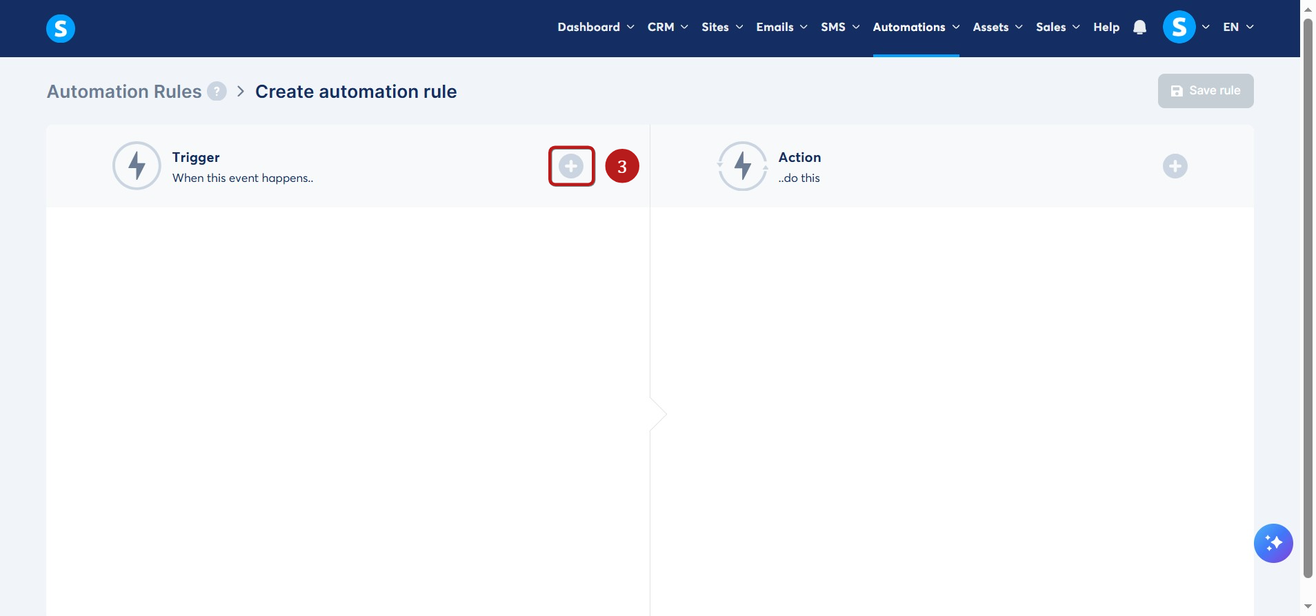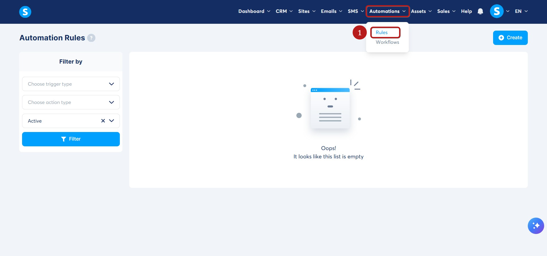 Yeni bir otomasyon kuralı eklemek için Oluştur a tıklayın (2).