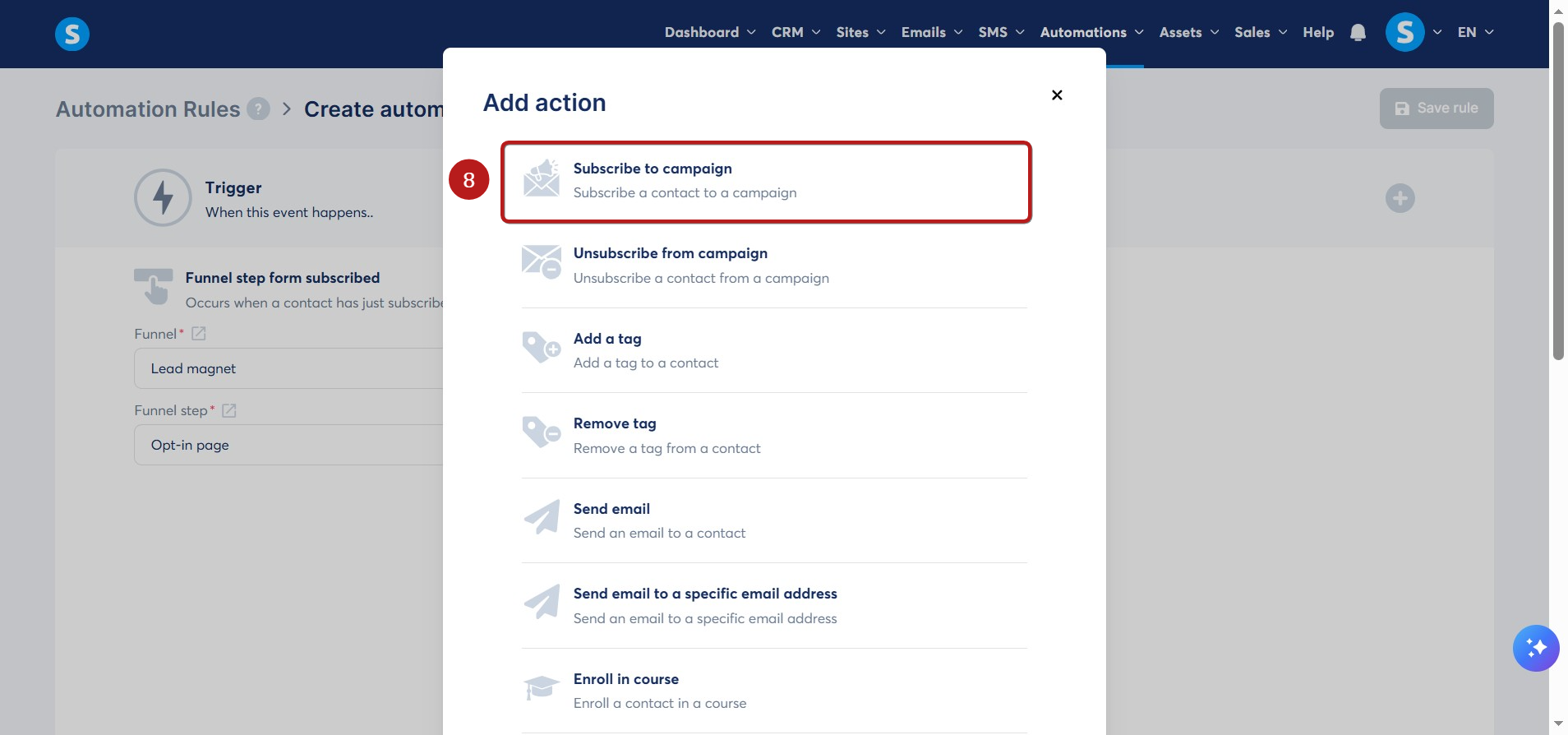 Kampanyanızın başlığını seçin (9), ardından kaydetmek için sağ üstteki Kuralı Kaydet e tıklayın (10).