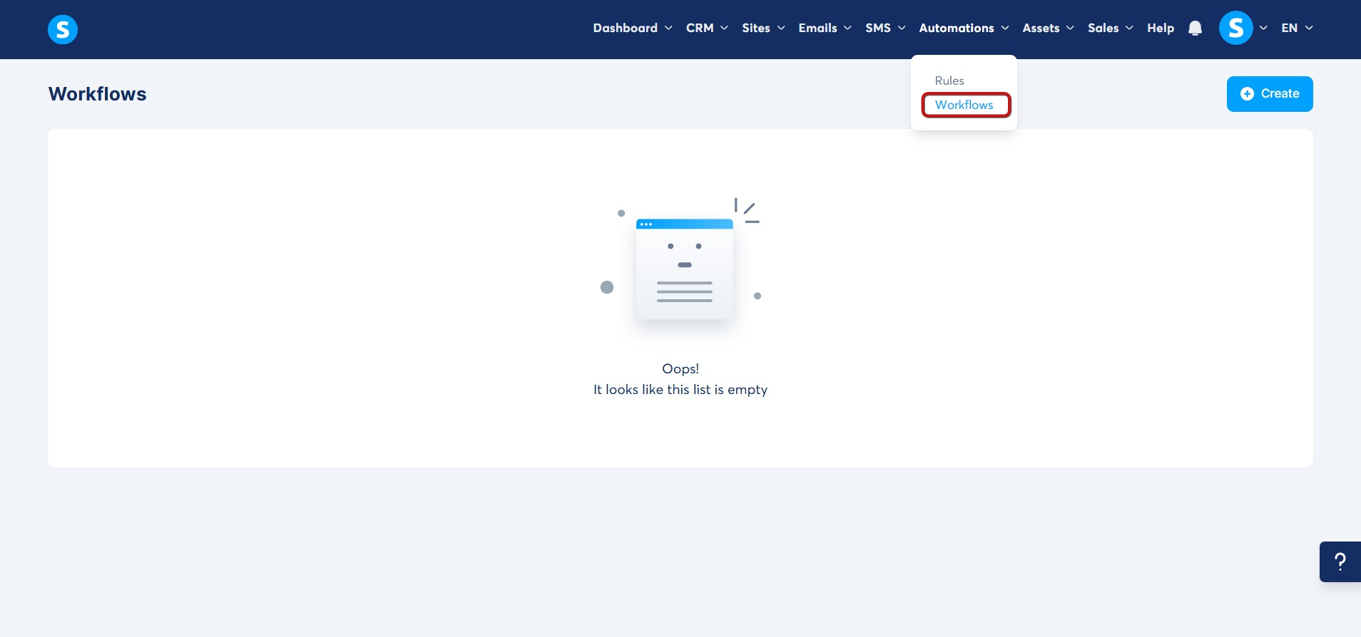 Yeni bir iş akışı oluşturmak için Otomasyonlar >> İş Akışları yolunu izleyin.