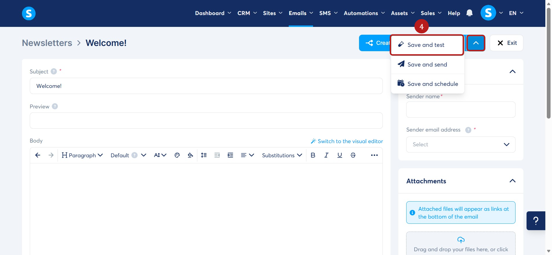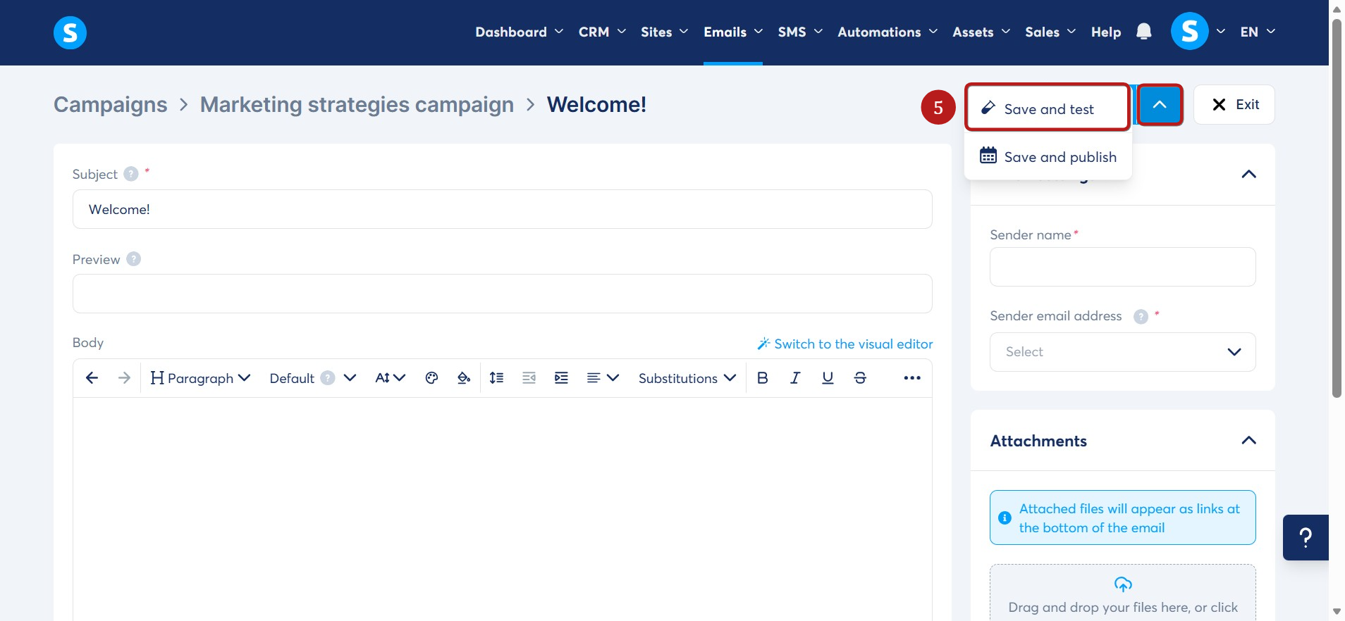 Kampanya e-postanızda Kaydet'e tıklayın ve test edin (5).