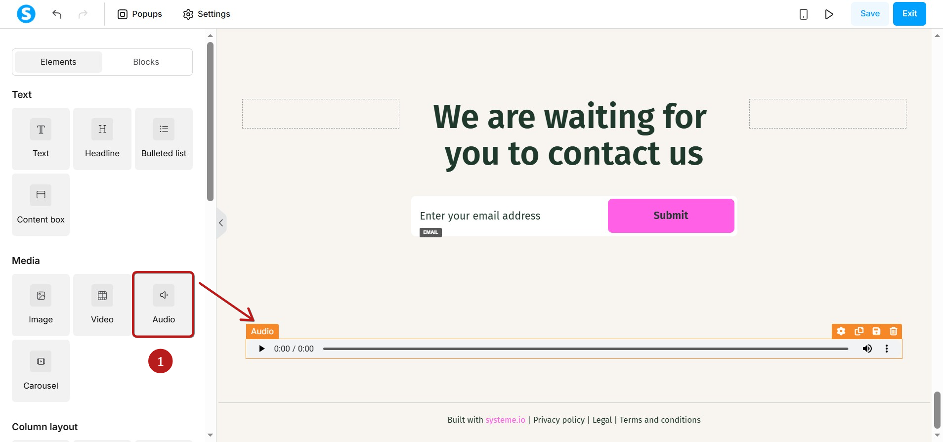 Bu makalede, systeme.io editörü ile sayfalarınıza nasıl ses ekleyeceğinizi öğreneceksiniz.