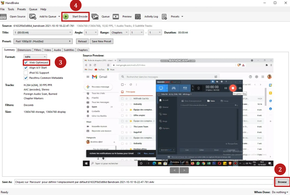 Videonuzu sıkıştırmaya başlamak için Encode'u Başlat (4) üzerine tıklayın.