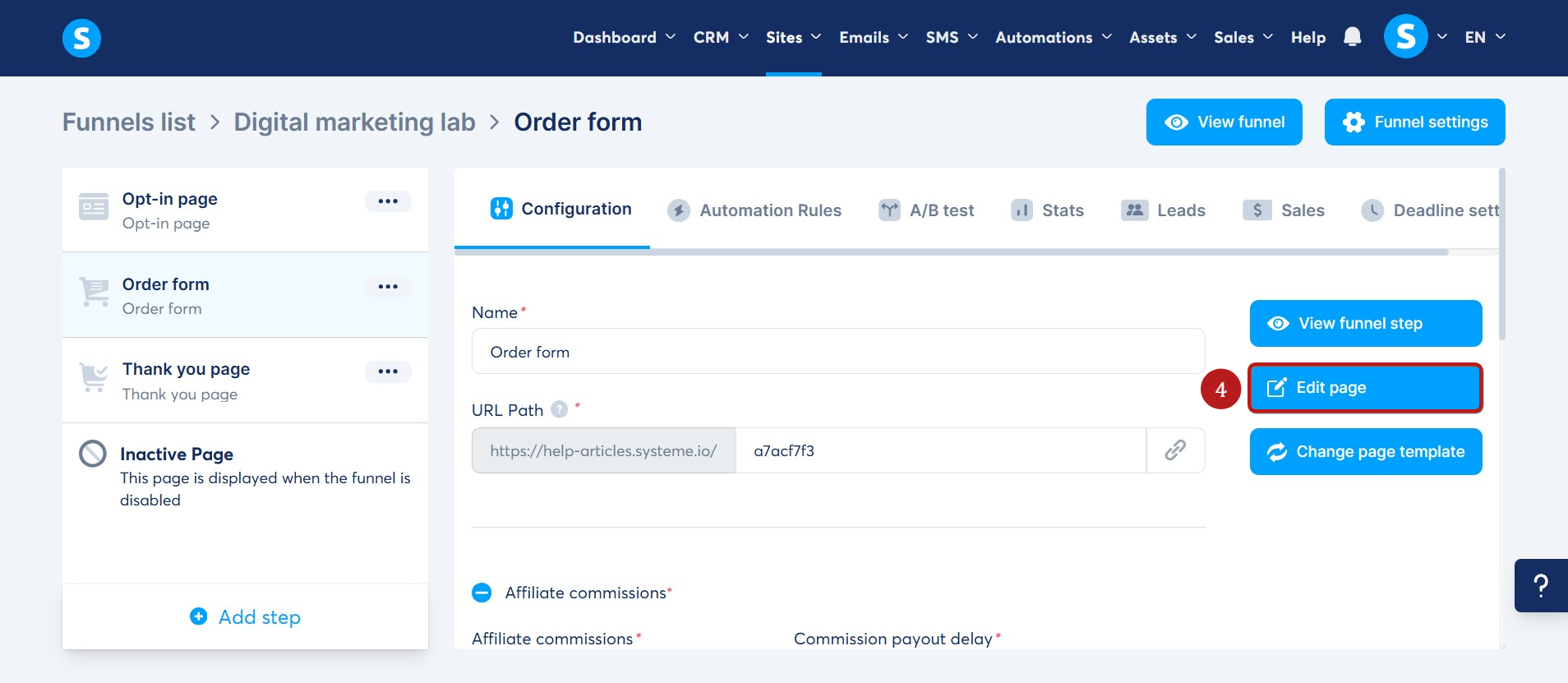 Satış sayfanızın düzenleyicisinde, bir metin öğesi ekleyin. Metni vurgulayın ve bir köprü oluşturmak için Bağlantı simgesi'ne tıklayın (13).