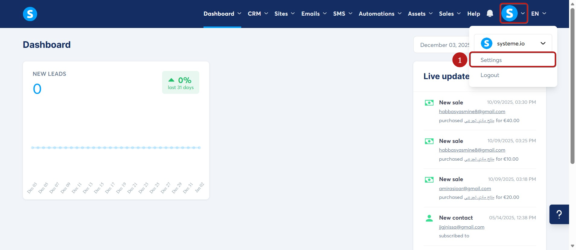 Profil resminize tıklayın ve ardından "Ayarlar "ı seçin (1).