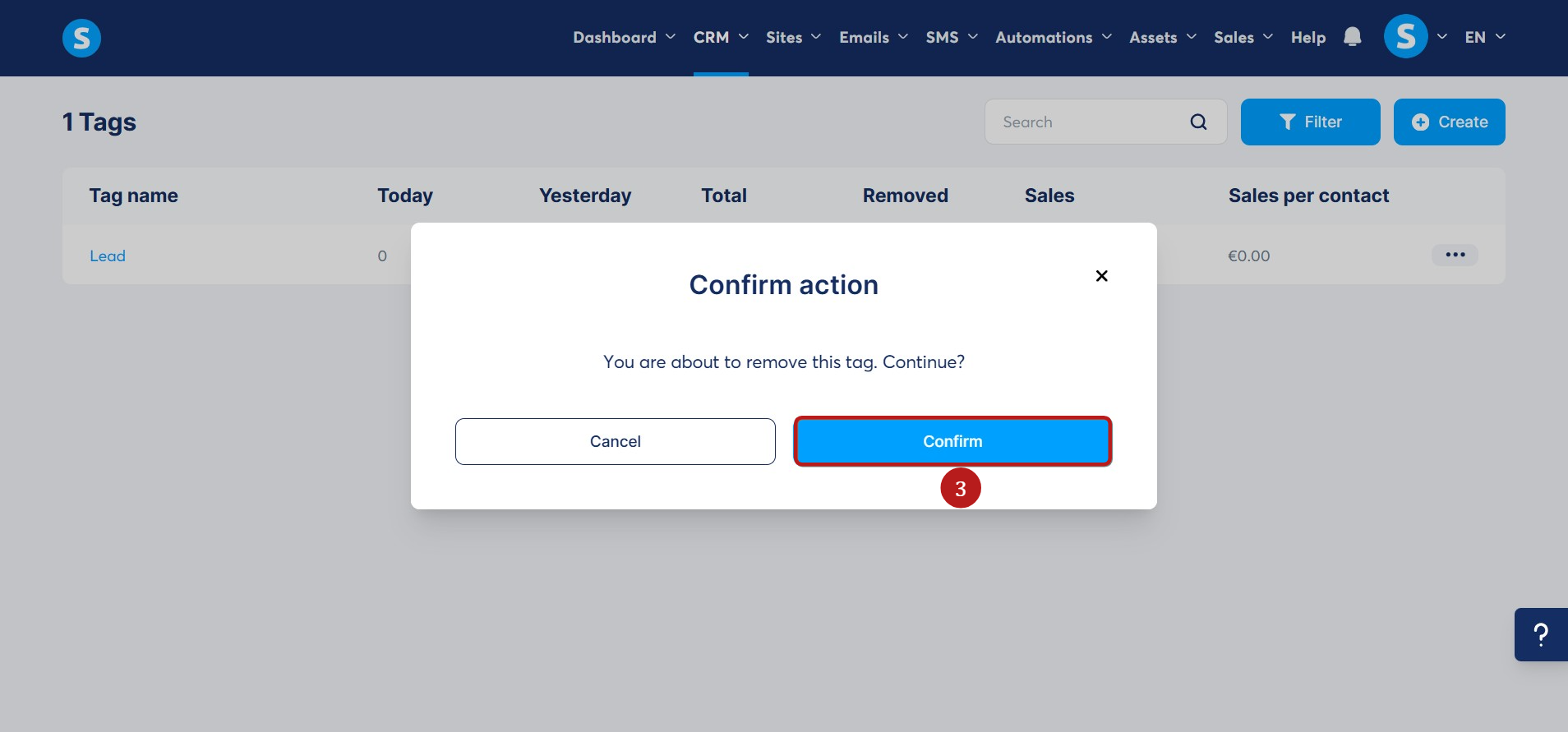 Son olarak, etiketi kalıcı olarak silmek için Onaylamak butonuna tıklayın (3).