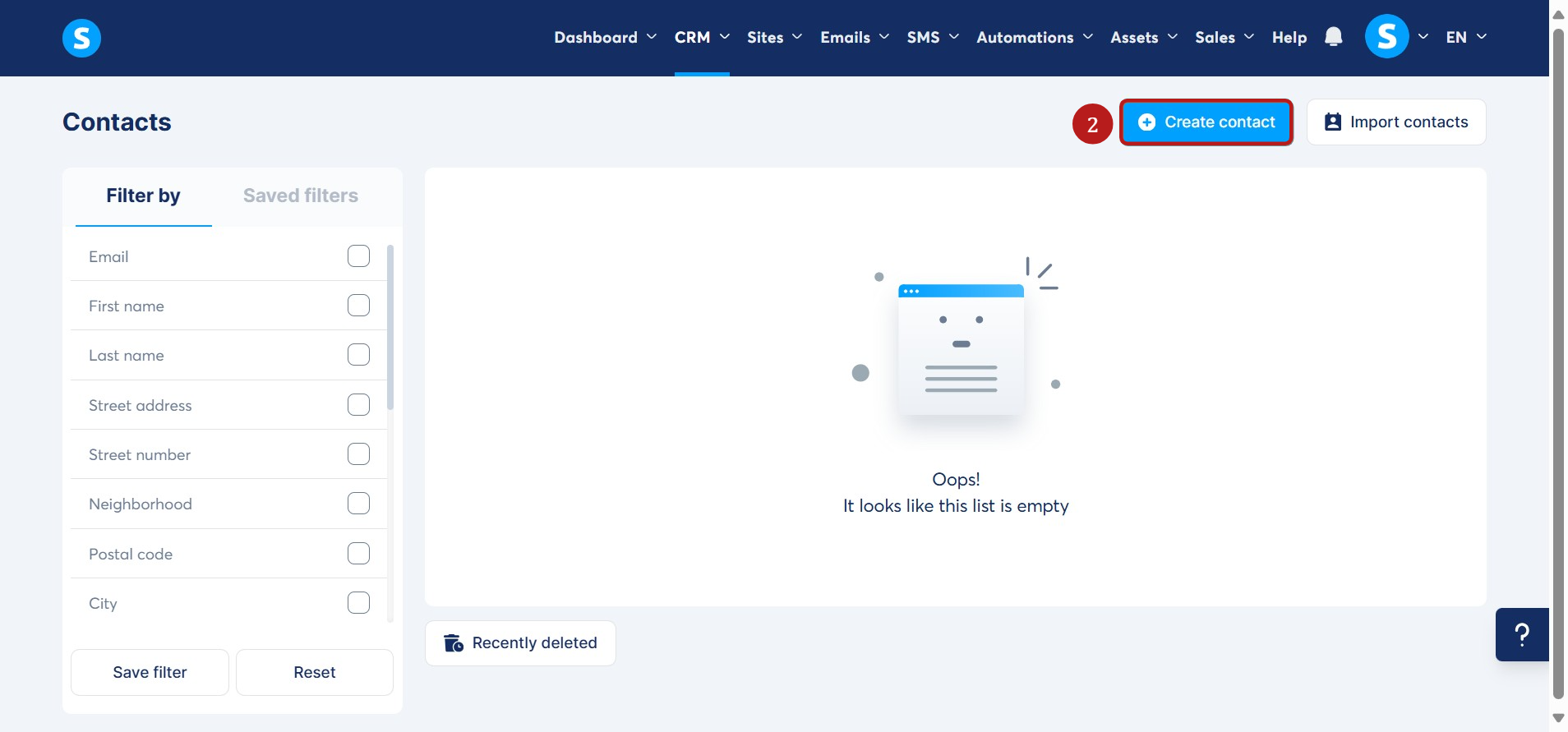 CRM sekmesi altındaki Kişiler'e (1) gidin.