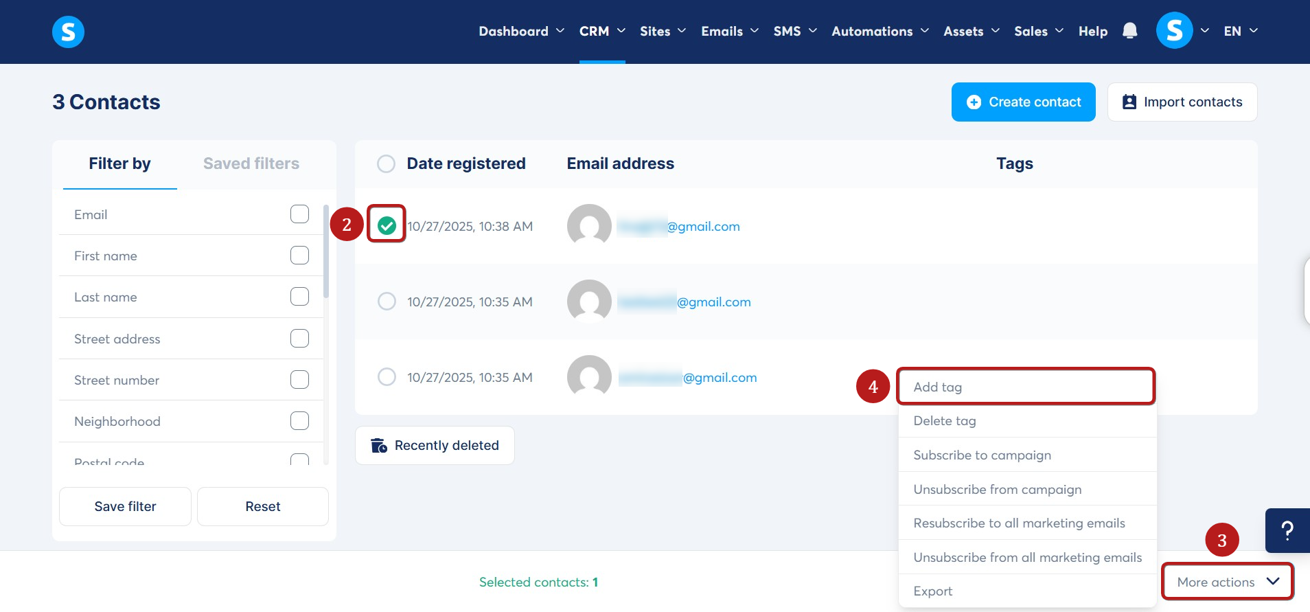 Etiketi atamak istediğiniz kişi veya kişileri seçin (2), ardından Daha fazla hareket e tıklayın (3) ve Etiket ekle yi seçin (4).