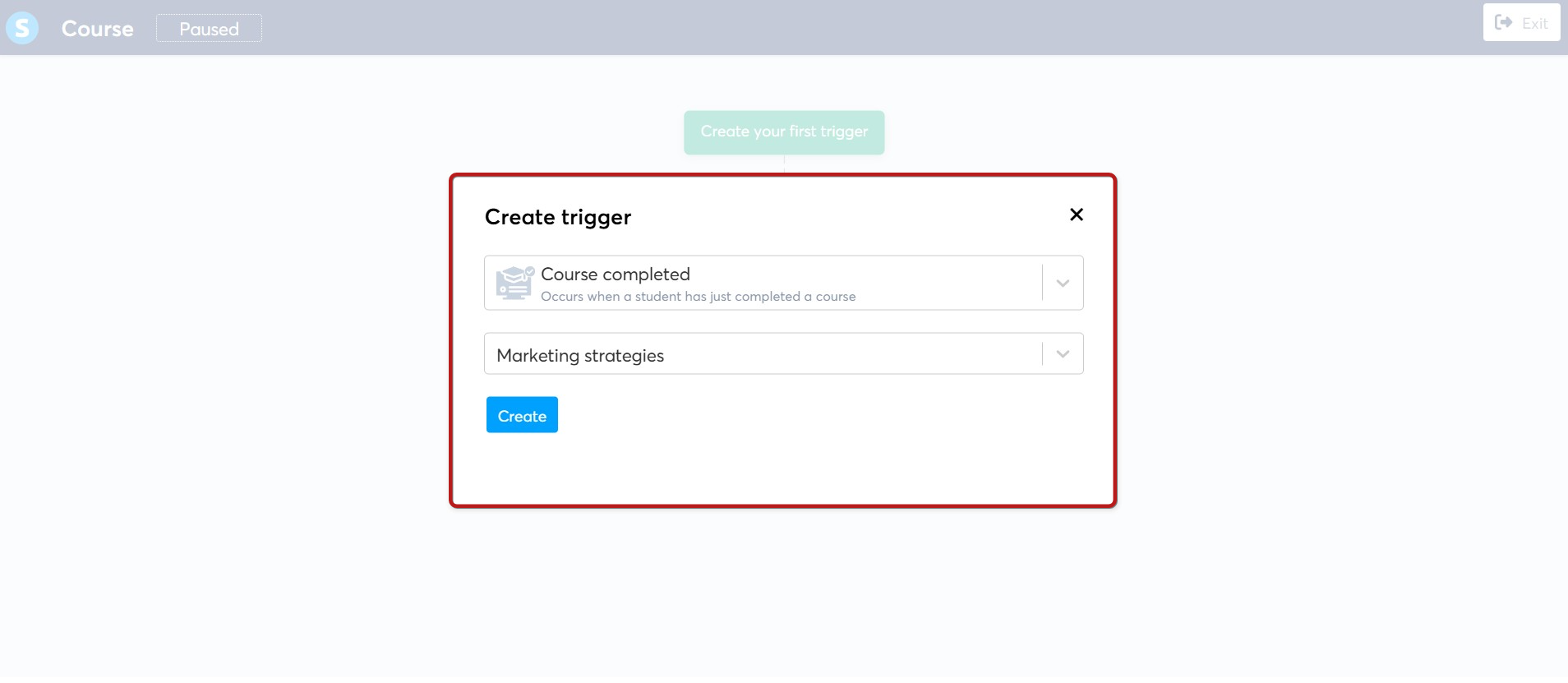 Ders tamamlandı tetikleyicisini seçin, ardından iş akışı eylemlerini tetiklemek istediğiniz kursu seçin.