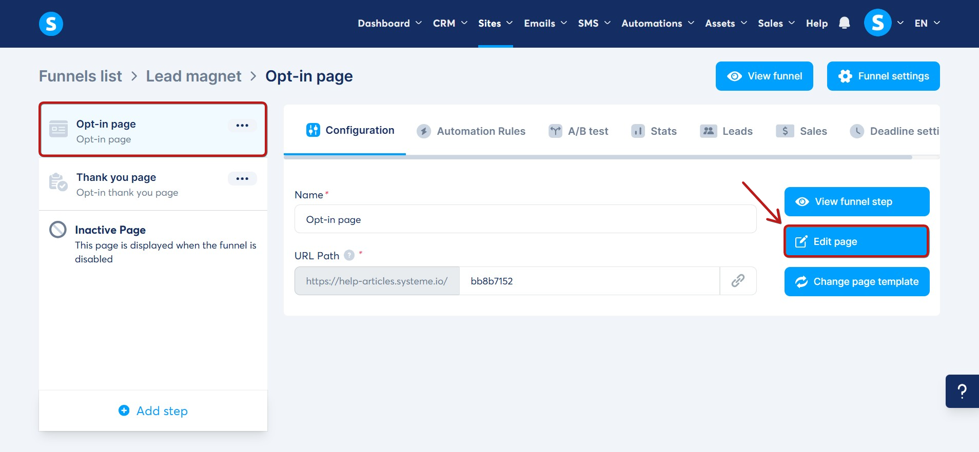 "Sayfayı düzenle" düğmesine tıklayarak sıkıştırma sayfanızın editörünü açın: