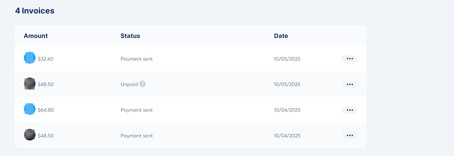 - Invoice status: Fatura ödenmiş ise "Payment Sent" (Ödeme Gönderildi), ödenmemiş ise "Unpaid" (Ödenmedi) durumunda olabilir.