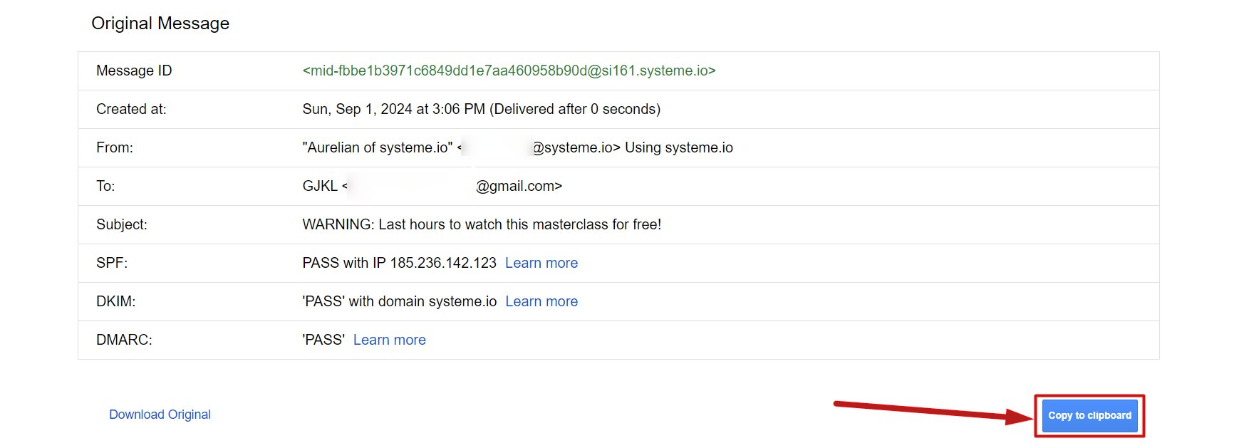 - E-posta başlığını içeren bir açılır pencere görünecektir, lütfen seçin, kopyalayın ve bir nota yapıştırın.