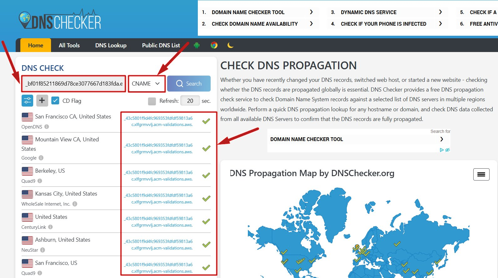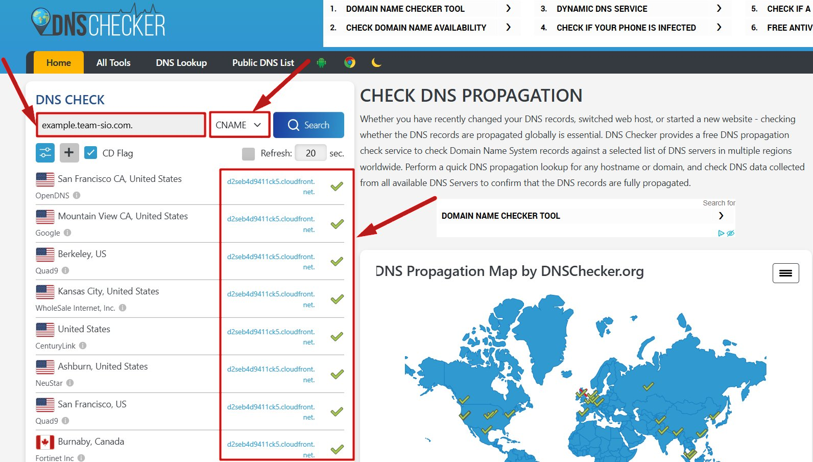 İki CNAME kaydı host'unuza düzgün şekilde eklendikten sonra, durumlarını aşağıdaki araçla kontrol edebilirsiniz: