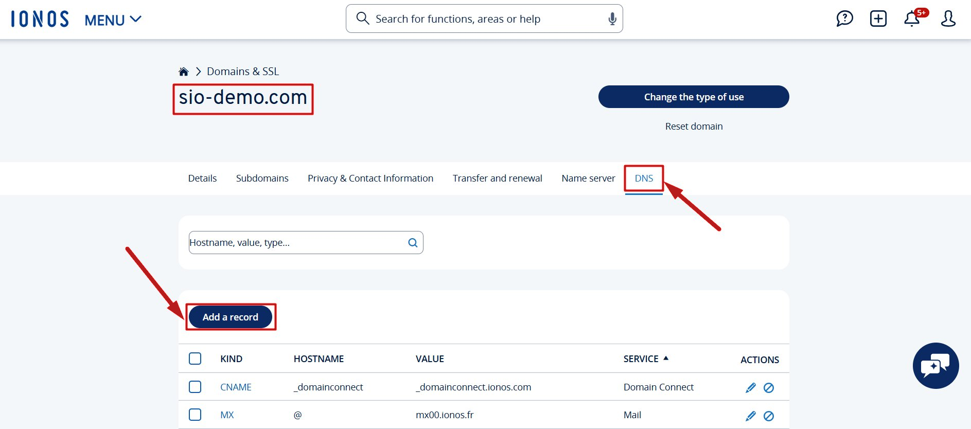Alt domain'i systeme.io'ya ekledikten sonra, IONOS hesabınızdaki DNS ayarlarını kontrol etmeniz gerekir.