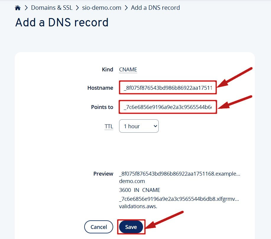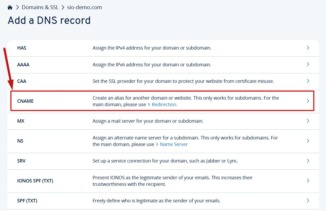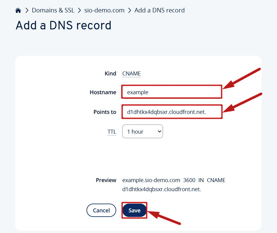 Bu örnekte, example.sio-demo.com alt domain'ini systeme.io'ya bağlayacağız