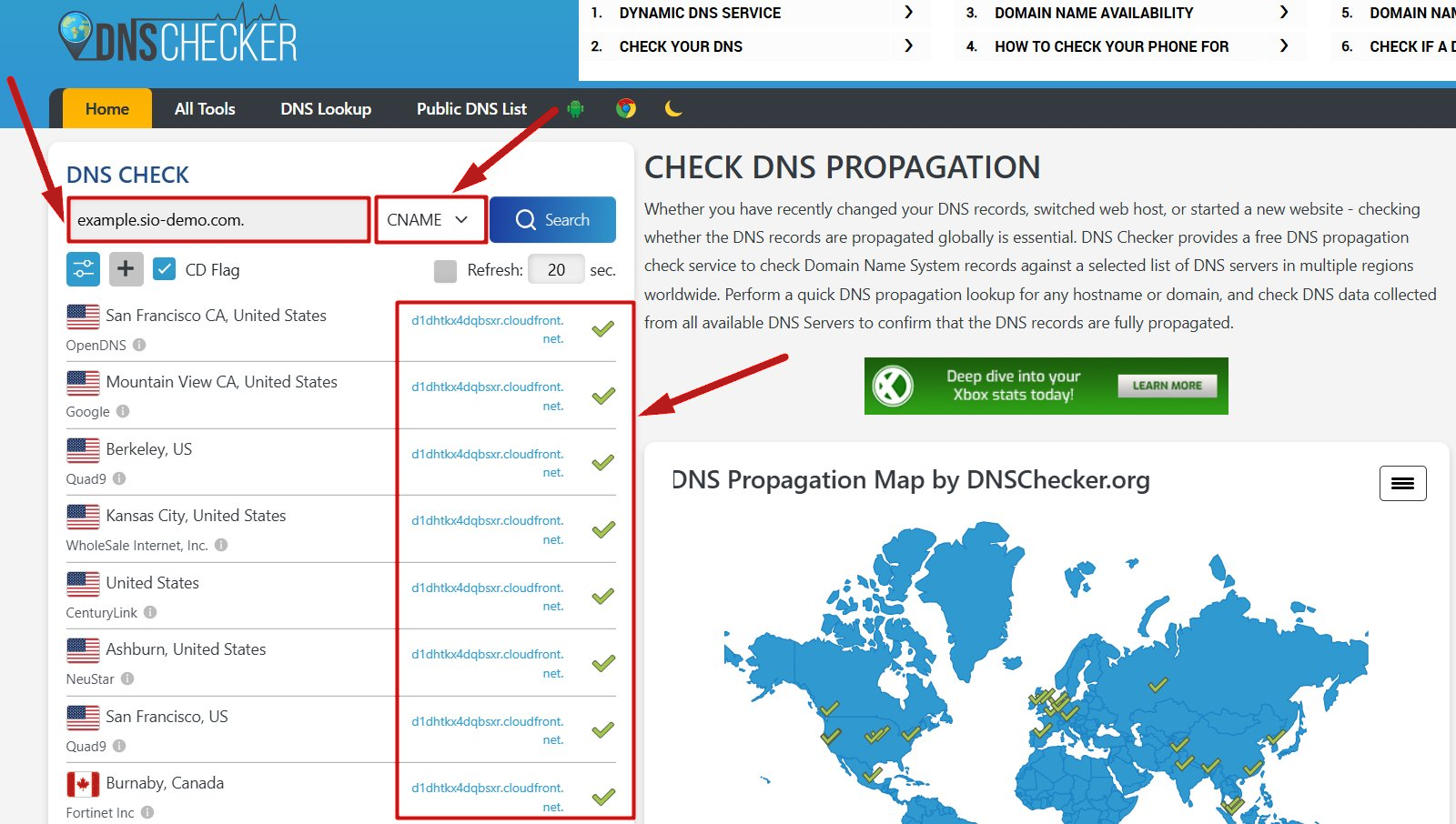 İki CNAME host'unuza doğru şekilde eklendikten sonra, işlevselliklerini aşağıdaki sitede kontrol edebilirsiniz: https://dnschecker.org