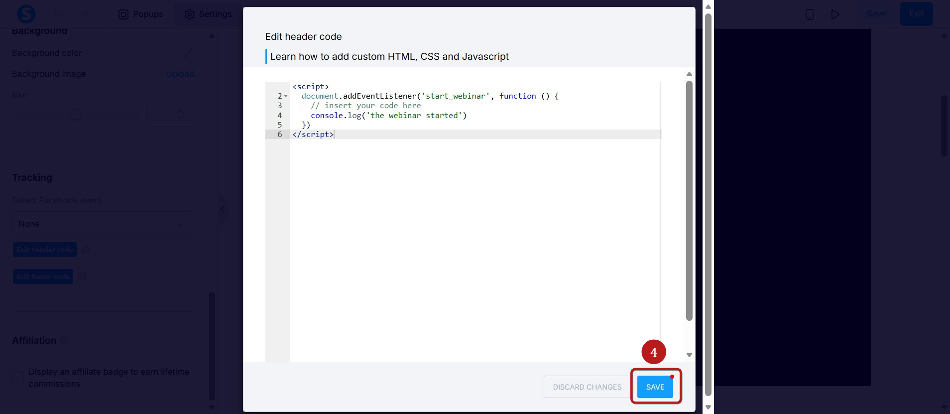 Webinar yayın sayfasının sayfa düzenleyicisini açın(1)