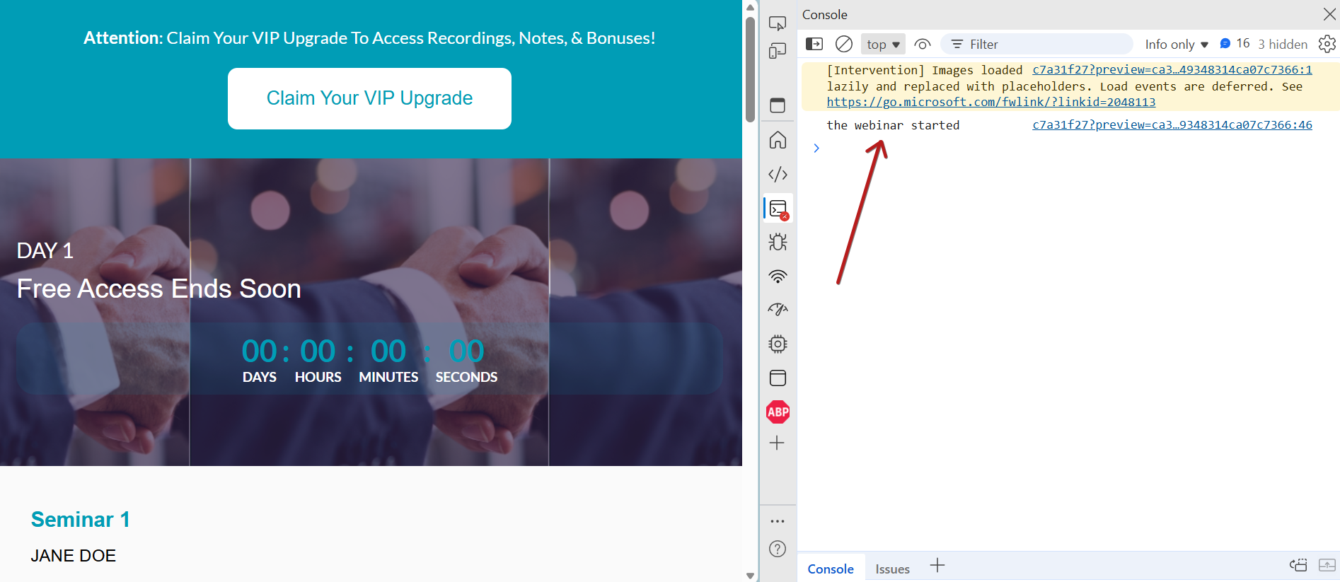 console.log('webinar başladı')