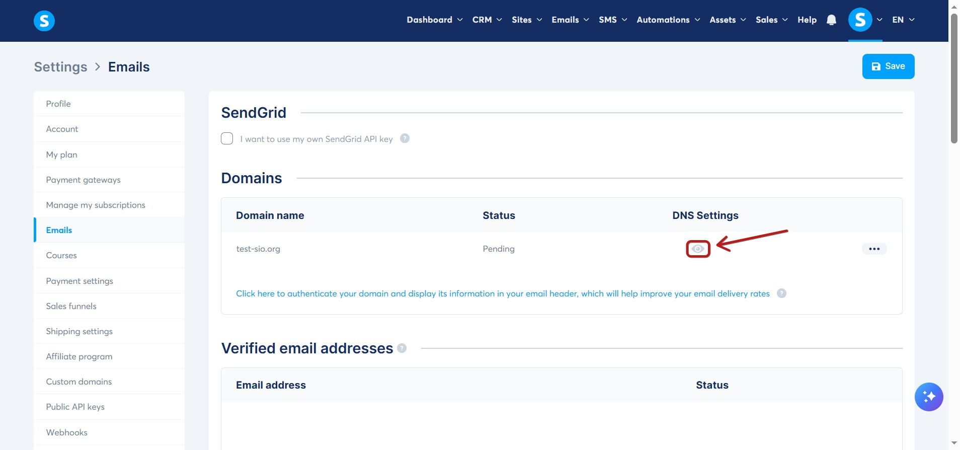 - Bir alan adının doğrulanması, systeme.io'dan e-posta göndermek için zorunludur.