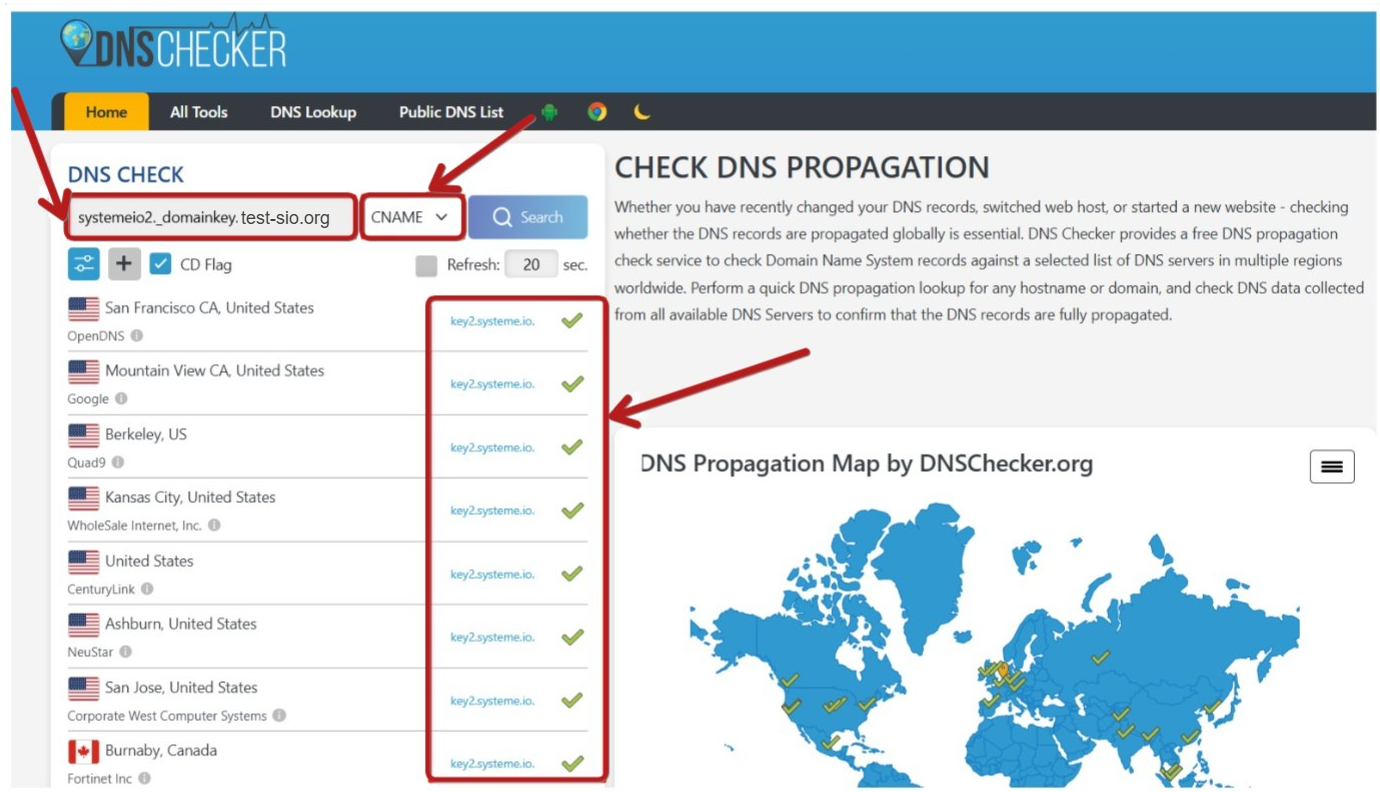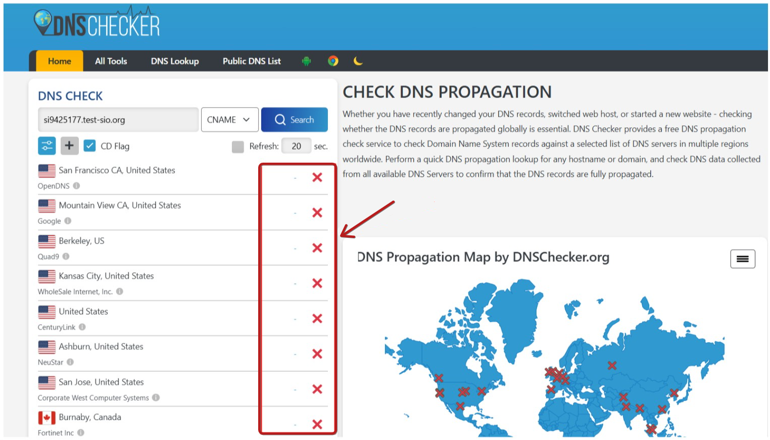 - CNAME kayıtlarınızın bu siteyi kullanarak doğru şekilde yapılandırıldığını kontrol edin: DNS denetleyicisi