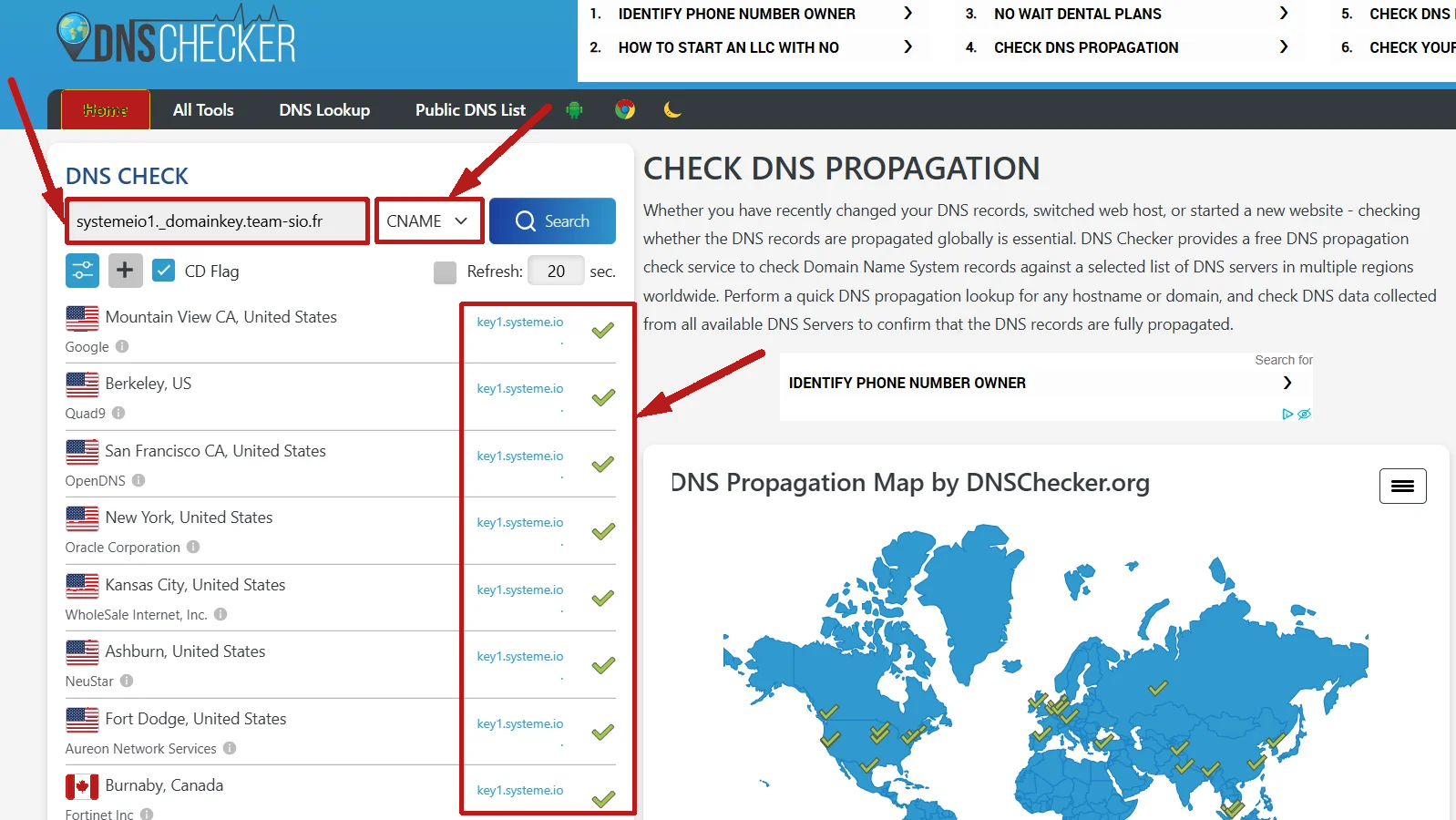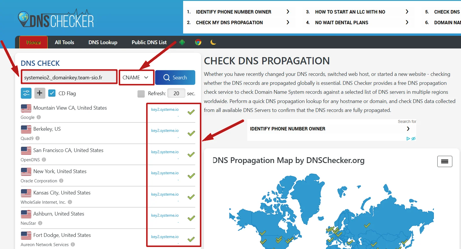 - CNAME kayıtlarınızın bu sitede düzgün şekilde yapılandırıldığını doğrulayın: DNS checker